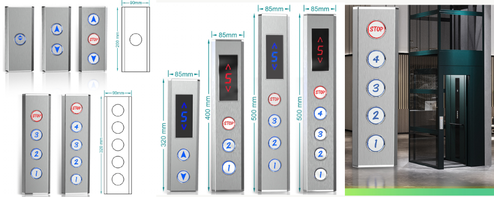 انواع شاسی بالابری تک کلید، 2کلید، 3کلید، 4کلید 5کلید با نمایشگر و بدون نمایشگر را طبق تصاویر زیر با برند آلومین لیفت را می توانید از افق آسانسور تهیه نمایید.